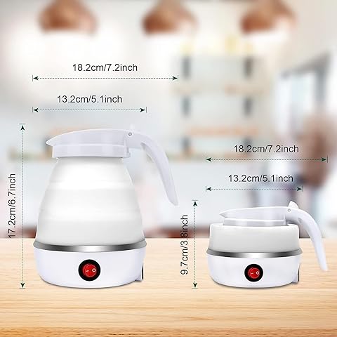 【Katlanabilir ve taşınabilir】Katlanabilir su ısıtıcısı katlanmış durumda sadece 8 cm (3,93 inç) ve açık durumda 19,8 cm (7,08 inç). Seyahat su ısıtıcısı kolay saklama ve taşıma için tamamen katlanabilir ve 0,6 litreye kadar kolayca genişletilebilir. Bavul veya sırt çantasına kolayca sığar. Nerede olursanız olun sıcak bir fincanın tadını çıkarın.